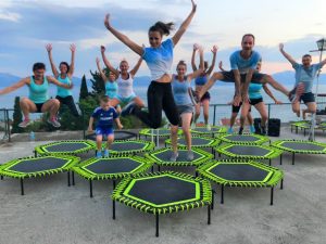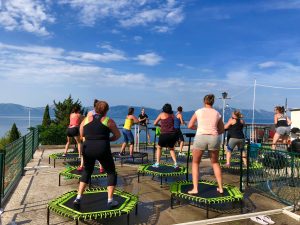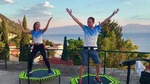 Keď som zostavovala rozvrh cvičenia na túto dovolenku, s plaveckými lekciami som až tak úplne nerátala. Po včerajšej večernej dažďovej smršti sa brodíme vodou cez našu strechu na ktorej cvičíme a je mi jasné, že ani metla, ktorou sa snažím mláky aspoň trochu zredukovať,  dnešný Strong nezachráni. Nevadí. Rozkladáme trampolínky, na ktorých môžeme cvičiť aj keby bola voda po členky.