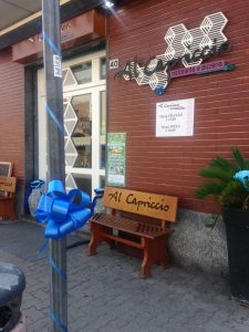 Ešte skôr, ako si vyberám pizzu, pýtam sa staršej usmievavej čašníčky s typicky taliansky hlasným a na gestikuláciu bohatým prejavom, prečo sú ulice ozdobené tak, ako sú. Nerozumie, tak vyťahujem mobil a strkám jej pod nos fotku autobusovej zastávky obviazanej modrou stuhou. „Ahaaaaa siiiiiiii“, chvíľka rozmýšľania, chvíľka ticha (nezvyčajný jav v Taliansku) a volá si na pomoc svoju anglicky lepšie hovoriacu dcéru, aby nás uviedla do obrazu.