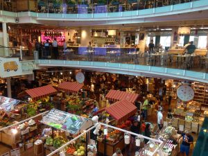Vitajte v Eataly! Krásne spojenie slov „eat“ a „Italy“, čo mňa, slovíčkovo hravú, nadchýňa ešte skôr, ako sa predo mnou rozprestrie ten dokonalý, farebný a voňavý trojposchodový svet celý na zjedenie. Zvonku nenápadná budova, ktorá však skrýva tri poschodia napratané jedlom od ovocia, zeleniny, syrov, cestovín, mäsových výrobkov, rýb, sladkostí a tak ďalej až po vína na najvyššom poschodí. Dáva to celkom logiku. Kým to celé prejdete, tak ste zrelí akurát tak na jeden 😀