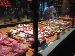 Keďže je čas obeda a táto náročná prechádzka nás celkom vyčerpala a hlavne navnadila na niečo dobré, staviame sa do radu na typickú taliansku focacciu, ktorú nám priamo pred očami vyťahuje kuchár z pece. Moja babka by tomu povedala obložený posúch.