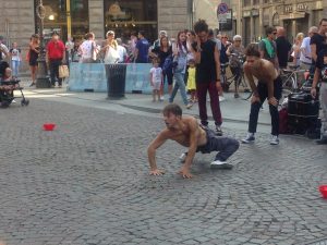 Cesta po nákupnej ulici smerom do centra je prehliadkou miestnych umelcov. Žongľujú s predmetmi od výmyslu sveta, hrajú na neidentifikovateľných hudbných nástrojoch, spievajú, vystavujú svoju hypermobilitu na obdiv ohýbaním sa do neuveriteľných polôh, maľujú a robia ďalšie veci na vylepšenie rodinného rozpočtu. Okolo niektorých len prejdete a usmejete sa, pri iných zostávate stáť s otvorenými ústami.