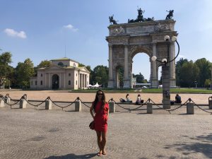 Po pár zastávkach vystupujeme a ocitáme sa priamo pod oblúkom Arco della Pace.