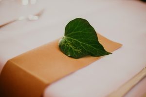 Stredom každého stola sa ťahá pás tmavozeleného brečtanu, včera natrhaného s mojou najlepšou kamarátkou a svedkyňou v jednej osobe Zuzkou u jej rodičov. Tým najkrajším lístkom sa dostalo pocty stať sa menovkou a mať na sebe zlatým písmom napísané meno cteného hosťa. Našťastie som mala v sebe toľko sebareflexie, že som túto úlohu prenechala šikovným dievčatám z Výzdoby Roses. Keby som tie mená písala ja mojím písmom, miestami prechádzajúcim do abstraktných prvkov s doktorským nádychom, je celkom možné, že by niektorí neboli usadení ani do čepčenia!