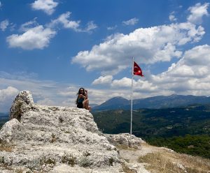 Na vrchole tejto zrúcaniny pod červenou tureckou vlajkou s polmesiacom zažívame skutočný vrchol! Vrchol, ktorý by nejeden moslim považoval za vrchol vrcholov. Stojíme tu práve v čase jednej z piatich modlitieb a tá sa k nám šíri z viacerých mešít naraz, čo spôsobuje elektrizujúci stereo efekt. Tretí deň vstrebávania kultúrnych inakostí by som si myslela, že mám tento nenapodobiteľný štýl modlenia už spracovaný a beriem ho ako samozrejmú súčasť každého dňa. Na tomto mieste s výhľadom na zrúcaniny amfiteátra a okolité hory, na ktorých sú aj napriek tridsať stupňovým teplotám zvyšky snehu, ma však Azán, čo je zvolávanie k spoločnej modlitbe, zastihol nepripravenú. Nečakaný súzvuk z viacerých mešít, zvuk trepotajúcej sa tureckej vlajky a kohúty z najbližšej dediny, ktoré zbesilo kikiríkajú, to všetko spolu tvorí atmosféru, ktorá mi okamžite stavia všetky chlpy do pozoru! Práve prežívam jeden z tých momentov, ktorý by som s piatym drinkom na all inclusive dovolenke pri bazéne nikdy nezažila. Vlastne možno aj áno, keby boli alkoholické a stiahla by som ich na obed cez najväčšie slnko. V skutočnosti by mi na to stačil aj jeden.